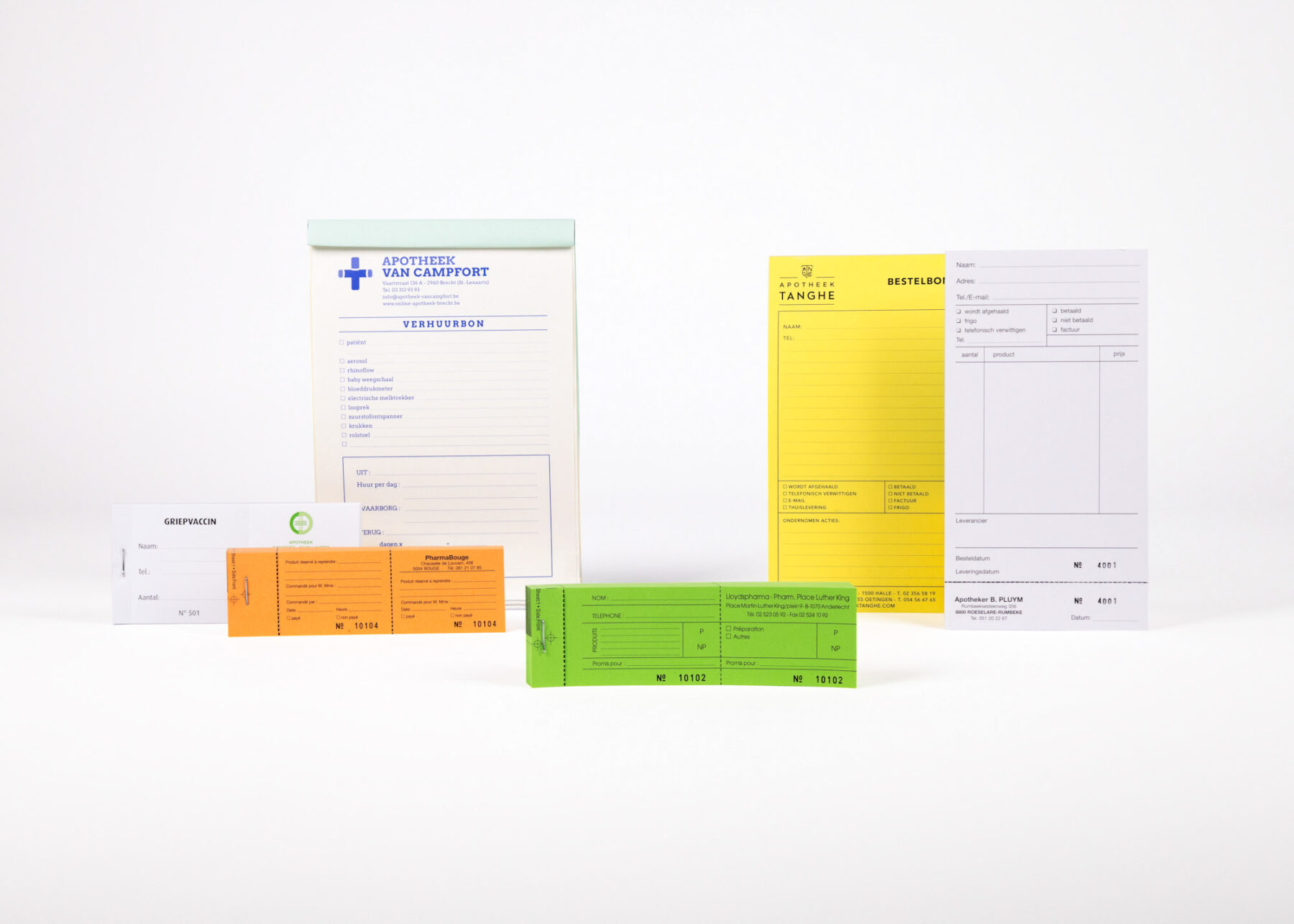 Si vous devez faire une préparation personnalisée pour un patient ou si un produit est en rupture de stock, vous pouvez faire imprimer des tickets de retrait numérotés ou des bons de commande avec une bande détachable auprès de l’imprimerie Sanderus. Ainsi, le client peut venir plus tard pour récupérer les articles. Sur ces bons d’enlèvement, vous pouvez indiquer à qui l’enlèvement est destiné, comment le client viendra le chercher, ce qui a été commandé et si le paiement a déjà été effectué. Les bons de location pour des articles tels que des aérosols, des béquilles ou des tensiomètres peuvent également être personnalisés avec une double feuille inscriptible, vous permettant d’avoir une copie ainsi que le patient. Vous pouvez y noter le nom du loueur, les dates de début et de fin de la location et l’éventuelle caution.